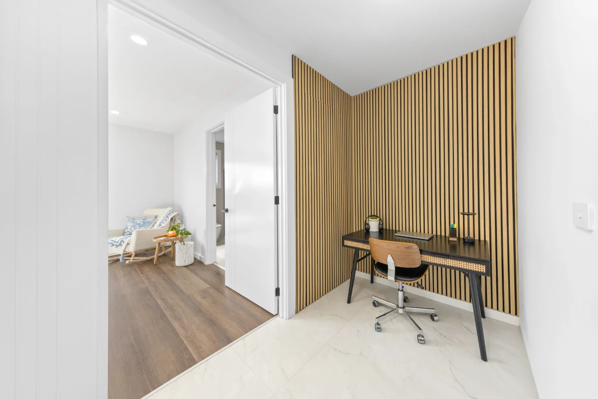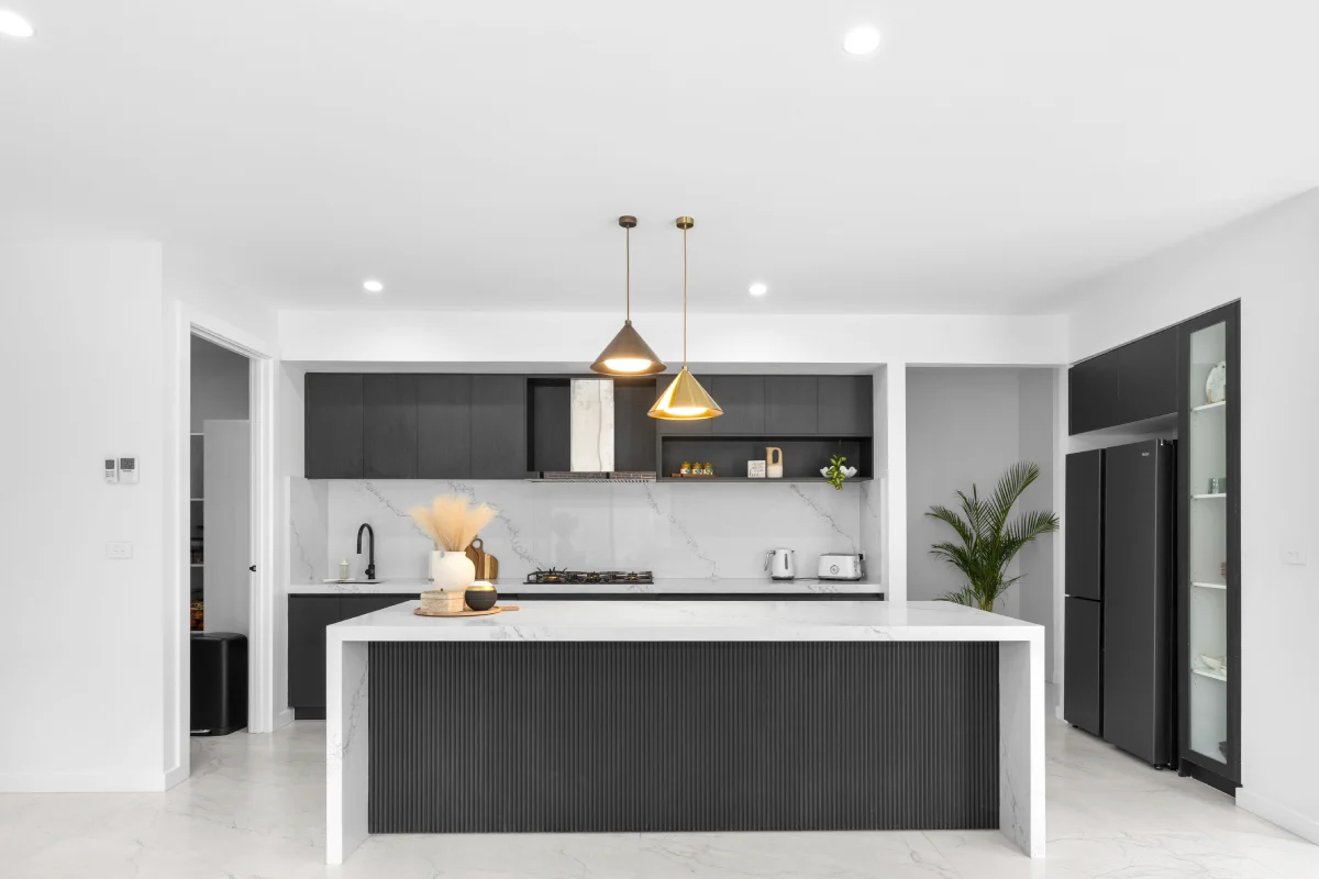 A wide entry leads into an expansive open-plan kitchen, dining, and living area, creating a natural sense of flow throughout the home. This central space allows them to stay connected throughout the day, whether it’s daily routines or time spent together, while still giving their daughter her own sense of space and comfort within the home.